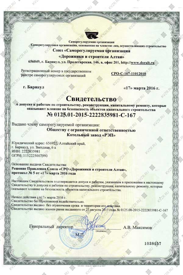 Получено свидетельство о допуске к работам, которые оказывают влияние на безопасность объектов капитального строительства