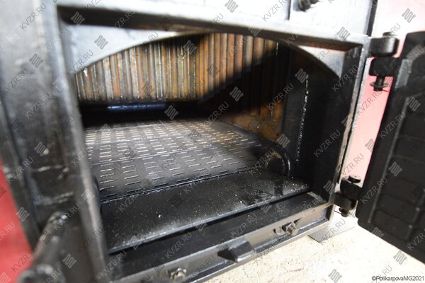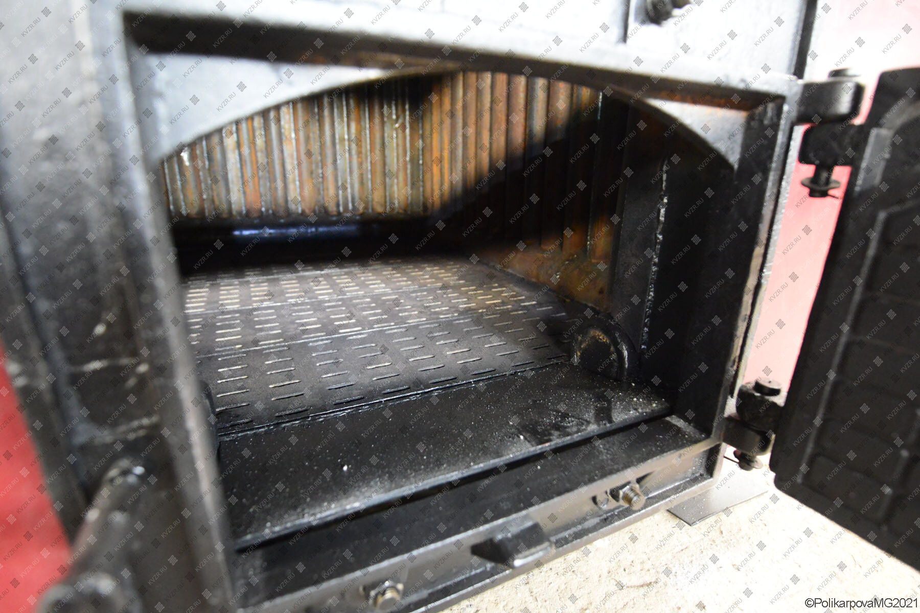 Необходимая высокая скорость и турбулентность воды достигается за счет большого количества перегородок. Температура теплоносителя на выходе достигает 95 -115 °С при рабочем давлении 0,3 - 0,6 МПа. Таких показателей вполне достаточно для отопления и водоснабжения жилых и производственных помещений дровяным промышленным котлом.