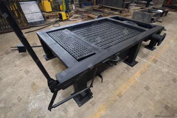Горение древесного топлива в ручном котле осуществляется на колосниковой решетке из чугуна со специальными отверстиями для золы. Зола, проваливаясь сквозь эти отверстия, подпадает в короб. Еще один такой короб располагается под конвективной частью. Для рациональной загрузки топлива фронтовая плита оснащается двумя загрузочными дверцами, расположенными друг под другом. Также для облегчения загрузки большего количества топлива топка выполняется в увеличенном размере, что способствует и лучшему сгоранию мелких и летучих частиц.